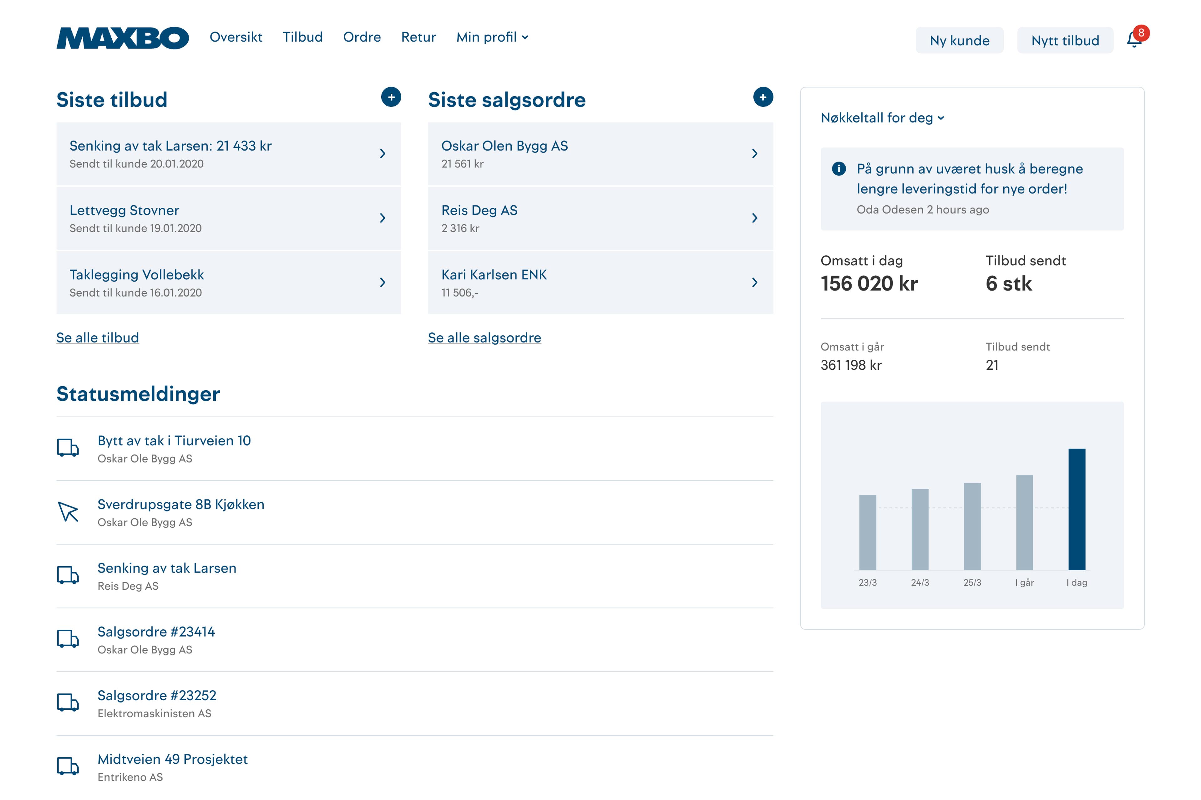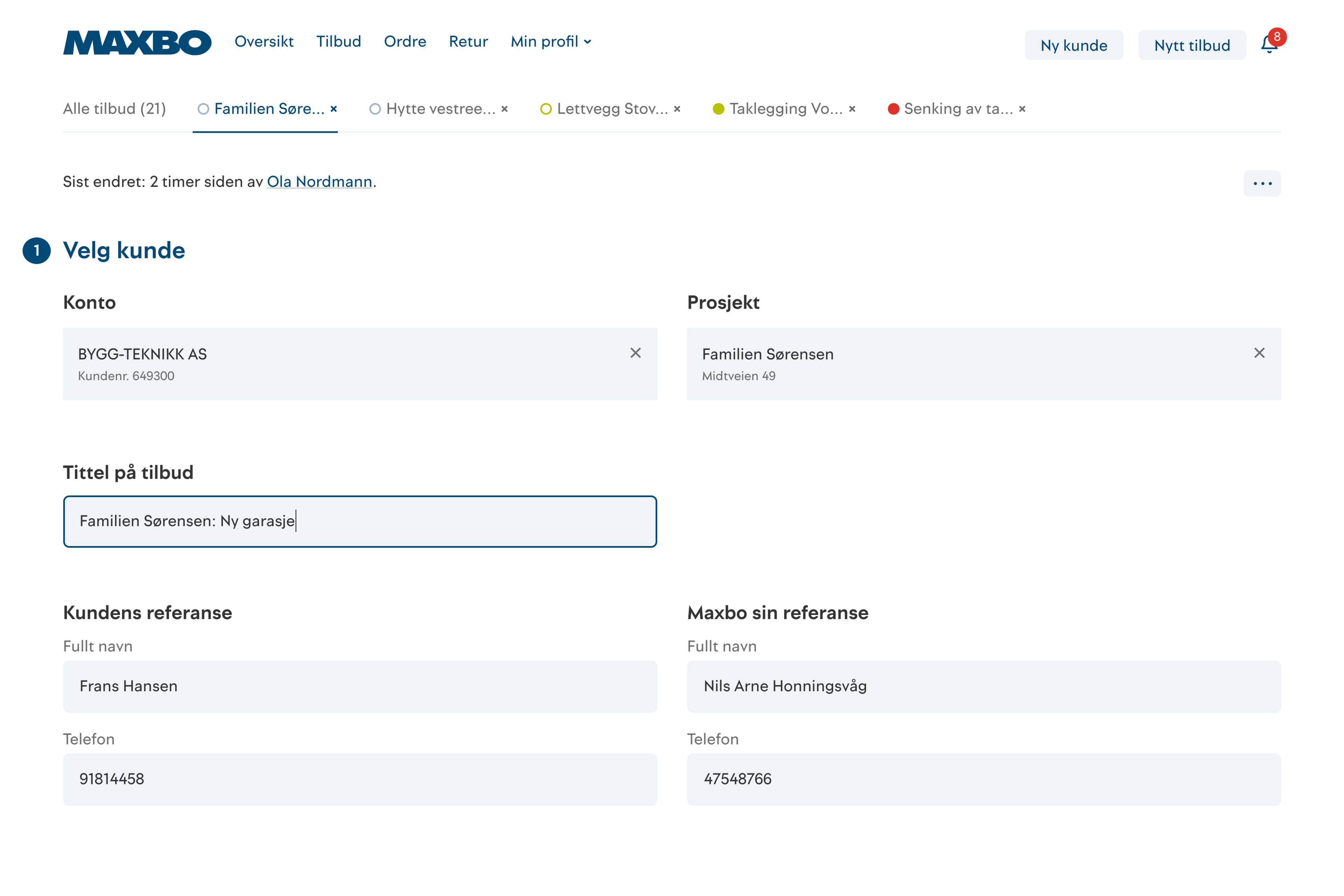 Maxbo sine selgere lager mer enn 80 000 tilbud i året. For å effektivisere og forenkle tilbudsprosessen er det satt sammen en ny forenklet flyt for å opprette tilbud, legge til de riktige varene og håndtere videre dialog med kundene.